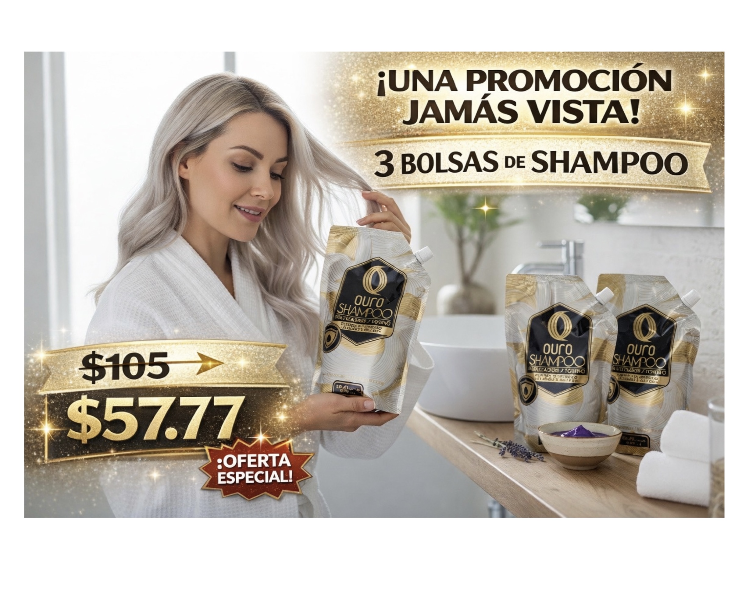 3 bolsas de 900 ml de shampoo matiz ouro